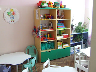 The next room in was the eating area where all the little tables were set up. It was so cute/sad to see the little kids sitting there drinking their tea. They had a fair number of toys on these shelves but I never saw the kids playing with them. The only ones I ever saw them with in the inner room were the really big lego blocks. Bigger kids would use them to bang the heads of little kids if they were in the way.